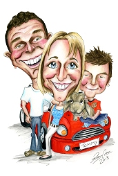These caricatures make great family portraits and don't forget to include the all important pets! Although, rest assured, the pooches on the left are not really left to drive the fire engine!